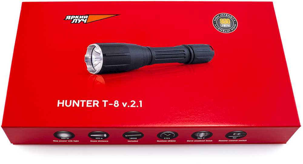 Комплект поставкиФонарь, аккумулятор 18650 со встроенный ЗУ, USB-кабель, выносная кнопка, крепление на ствол, ключ для установки крепления на ствол, чехол на пояс, темляк.