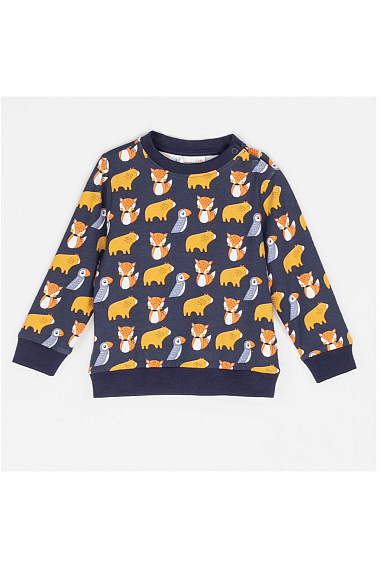 Стильный свитшот свободного кроя, украшен оригинальным детским принтом. Предусмотрена удобная застежка на плече в виде кнопочек. Низ свитшота и рукава - на широкой резиночке для удобного прилегания. Выполнен из натурального неаллергенного материала, мягкий и приятный на ощупь.