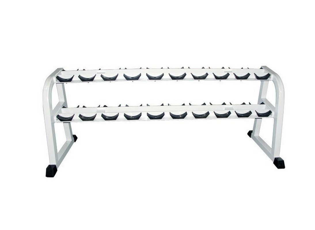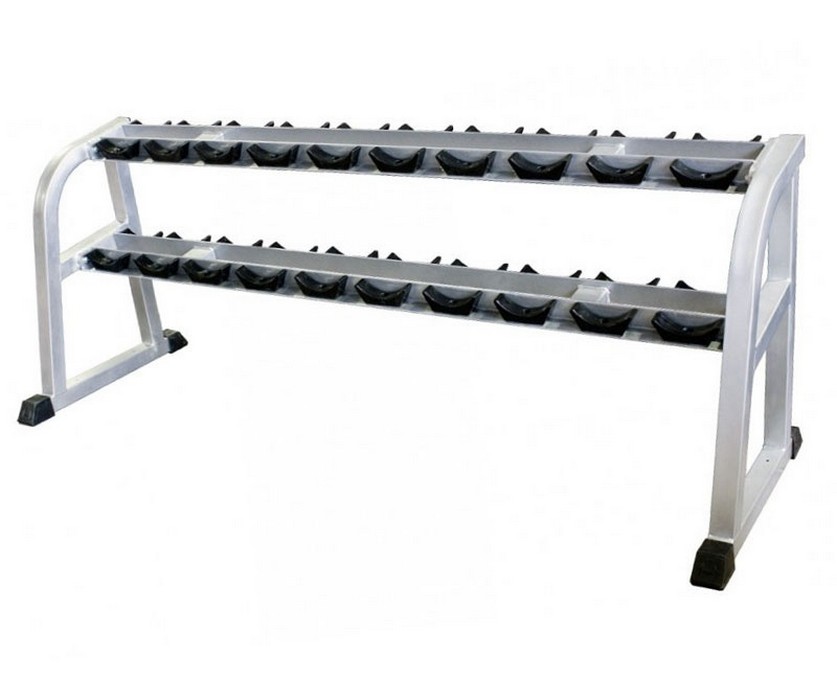Стойка предназначена для хранения 10 пар профессиональных гантелей, а также других гантелей с длиной ручки не менее 120 мм.