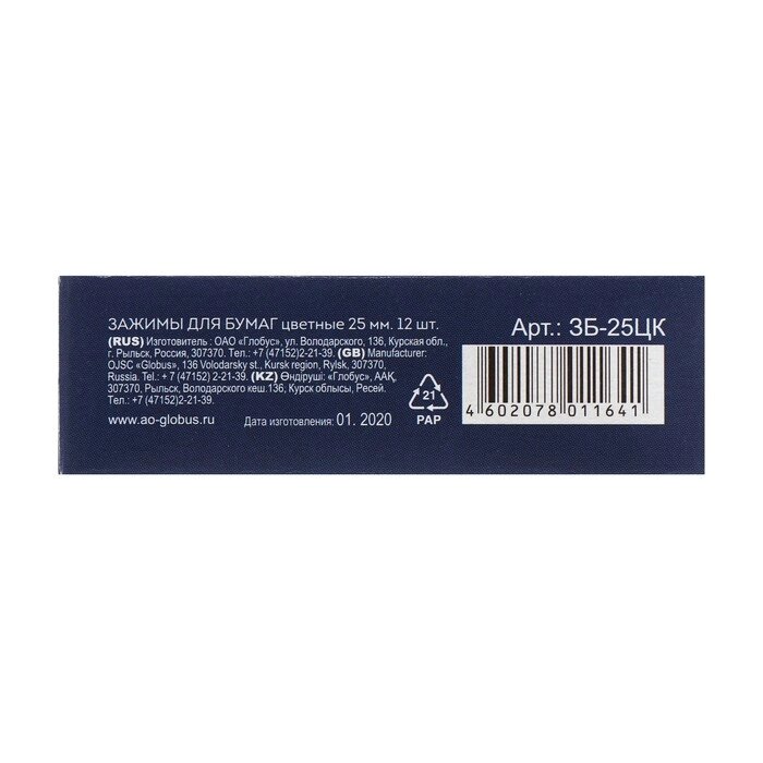 Зажимы для бумаг GLOBUS, 12 шт., 25 мм, цветные