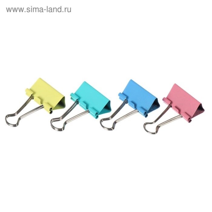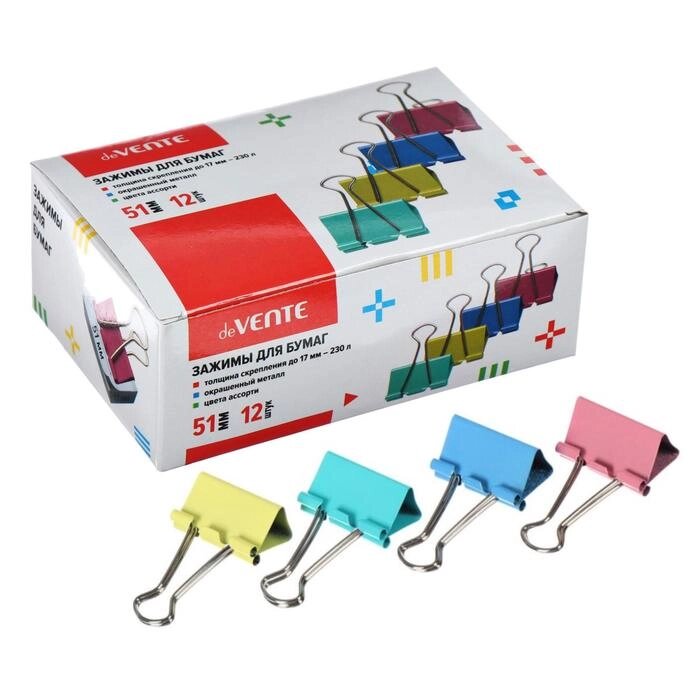 Зажимы для бумаг 51 мм, 12 штук, deVENTE, металлический, микс х 4 цвета, картонная коробка