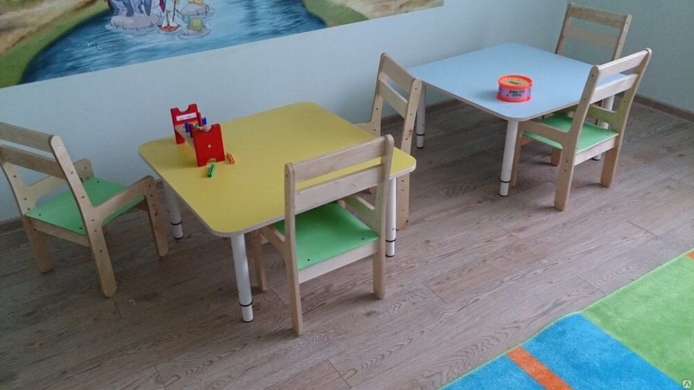 Стол обеденный с влагостойким покрытием для детского сада регулируемый по высоте (700х700х№арт. СОП8