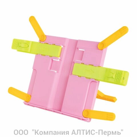 Подставка для книг ЮНЛАНДИЯ, с боковыми зажимами, регулируемый наклон, пластик, розовая, 237907