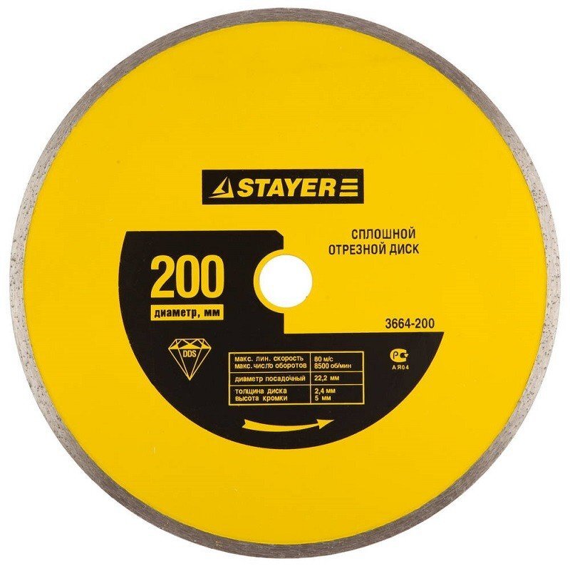 - Название по накладной Круг отрезной алмазный STAYER "MASTER", сплошной, влажная резка, для УШМ, 22, 2х200мм