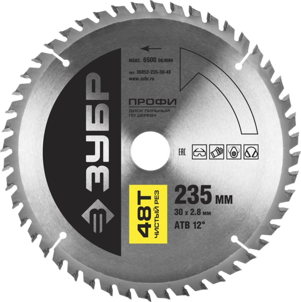 - Название по накладной Диск пильный "Чистый рез" по дереву, максимальный ресурс, 235х30 мм, 48Т, ЗУБР Профессионал