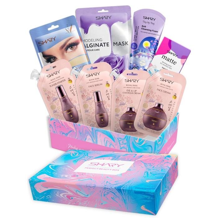 - Составляющие набора Матирующие салфетки, Тонер, Сыворотка, Пенка для лица, Патчи, Маска для лица, Крем
