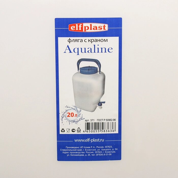 Фляга пищевая, 20 л, с краном, горловина 15 см, Aqualine'