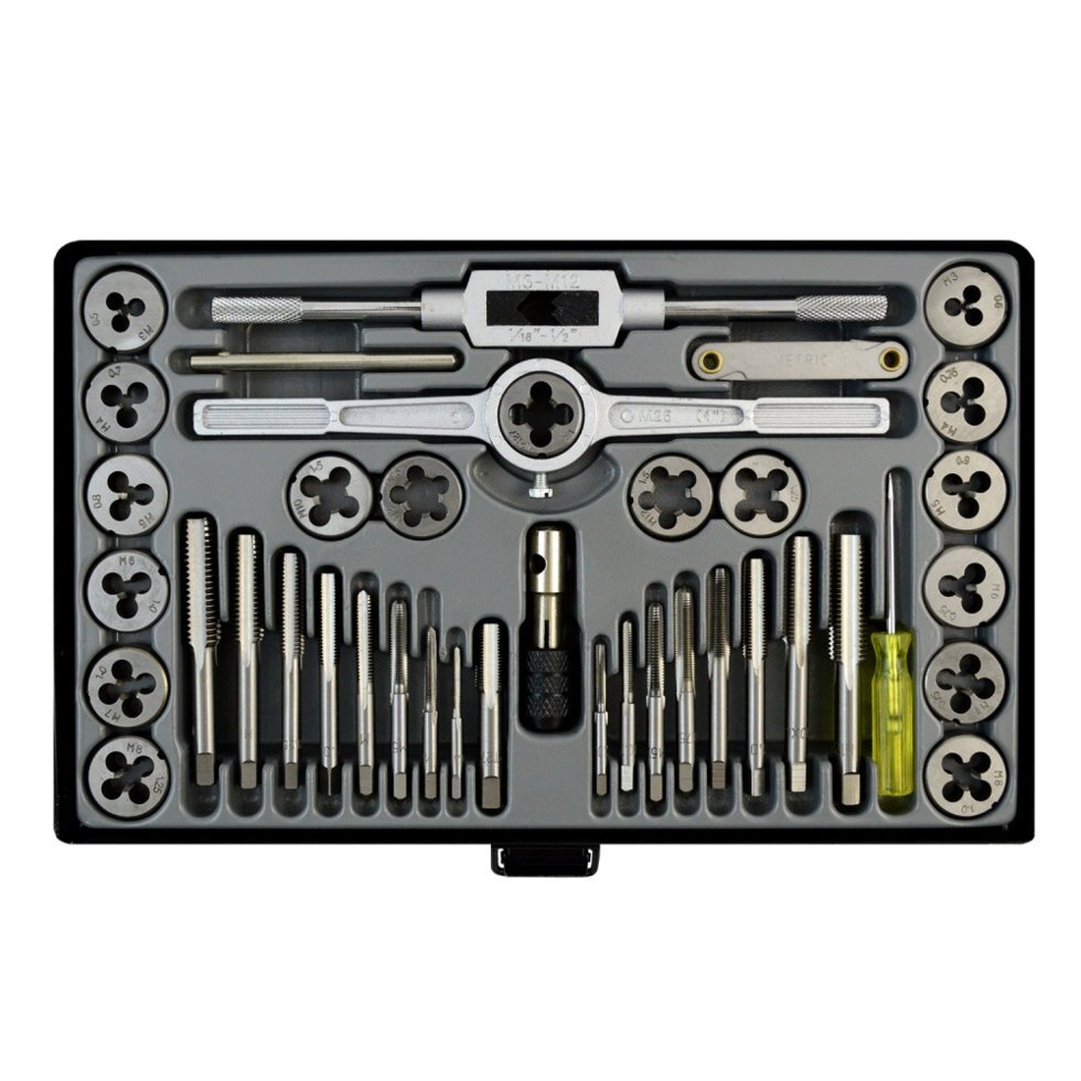 Набор метчиков и плашек м3-12 wiederkraft 40 предметов, метрическая резьба wdk-dtm3040