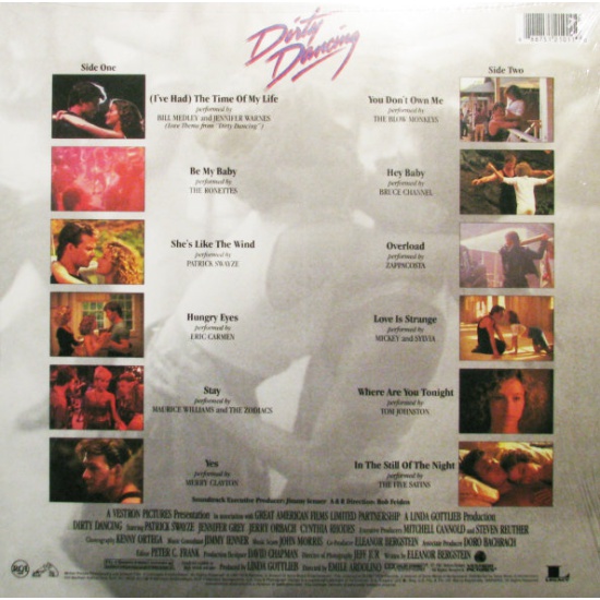 Трек-лист:A1. Bill Medley & Jennifer Warners - (I've Had) The Time Of My LifeA2. The Ronettes - Be My BabyA3. Patrick Swayze - She's Like The WindA4. Eric Carmen - Hungry EyesA5. Maurice Williams & The Zodiacs - StayA6. Merry Clayton - YesB1. The Blow Monkeys - You Don't Own MeB2. Bruce Channel - Hey BabyB3. Zappacosta - OverloadB4. Mickey & Sylvia - Love Is StrangeB5. Tom Johnston - Where Are You TonightB6. The Five Satins - In The Still Of The NightПереиздание музыки к фильму "Грязные Танцы". Этот саундтрек стал платиновым диском, а композиция "(I've Had) The Time Of My Life" получила "Оскар" и "Золотой глобус" в номинации "Лучшая песня", а также премию Грэмми за лучший дуэт.