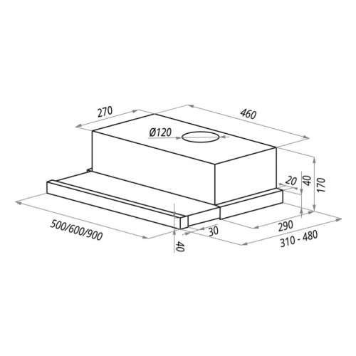 Дизайн Встраиваемая вытяжка из высококлассной стали, передняя планка отделана тонированным стеклом, встраивается в шкаф над поверхностью плиты. Компактная, она идеально подойдет для стандартных кухонь не больших размеров (до 12 кв.м), благодаря выдвижному козырьку она эффективно собирает загрязненный воздух над плитой. Дизайн великолепно впишется в любой кухонный интерьер и благодаря высокому качеству материалов прослужит десятилетия. Современный функционал Вытяжка оснащена колыбельным управлением 2-мя скоростями. Широкая рабочая поверхность обеспечивает эффективный захват загрязненного воздуха и предотвращает оседание жира и копоти на шкафах и потолке. Производительность и мощность Мощность данной модели составляет 140 Вт, вытяжка оснащена итальянским мотором, производительность 420 м3/ч, что позволяет эффективно очищать воздух.Подсветка рабочей зоны Модель оснащена лампой накаливания (1*28), света которого достаточно для комфортного приготовления пищи на плите.Монтаж Встраиваемая вытяжка монтируется в шкаф над поверхностью плиты. На ваш выбор можно сделать отвод в вентиляционное отверстие или использовать сменный угольный фильтр.