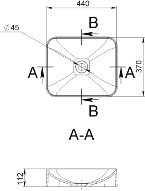 Умывальник на столешницу, ширина 447 мм, длина 377 мм, форма: прямоугольная, искусственный мрамор.
