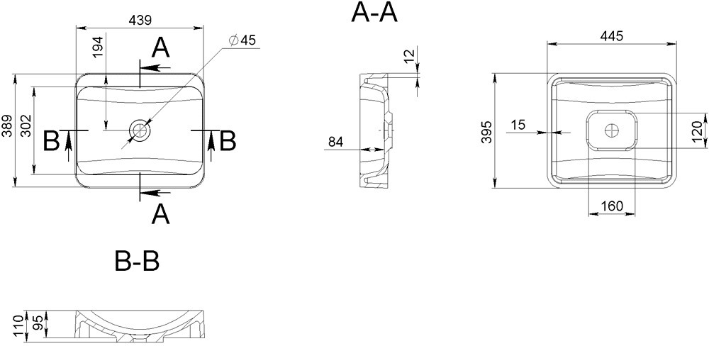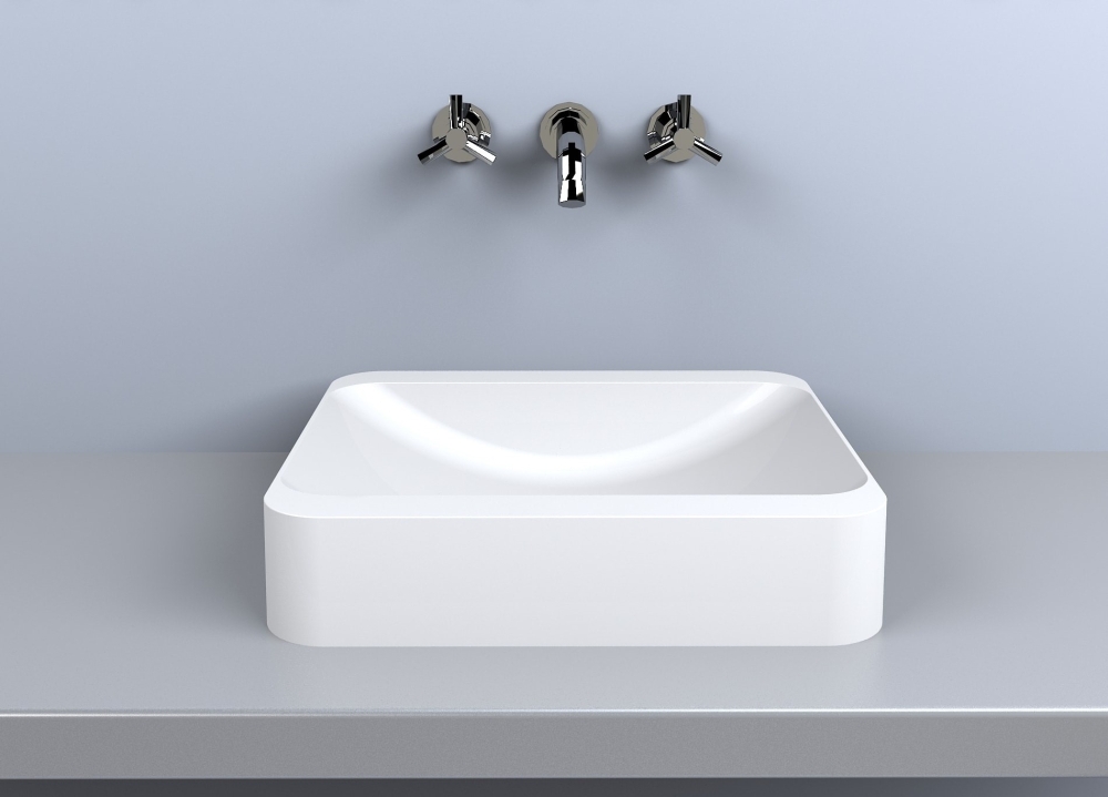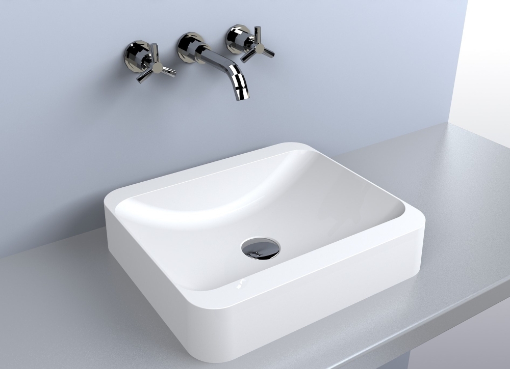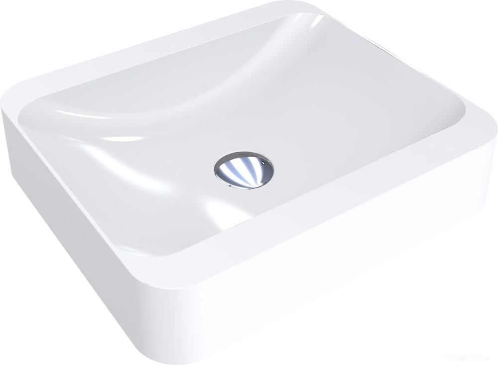 Умывальник на столешницу, ширина 44.5 см, длина 39.5 см, форма: прямоугольная, искусственный мрамор.