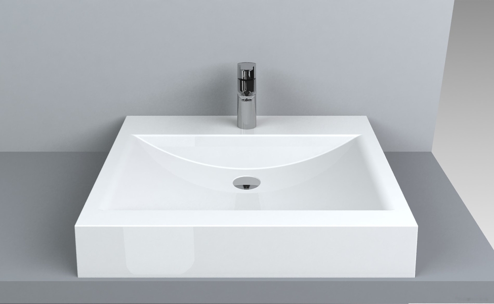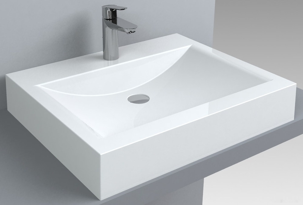 Умывальник на столешницу, ширина 59.6 см, длина 49.7 см, форма: прямоугольная, искусственный мрамор, отверстие под смеситель.