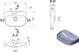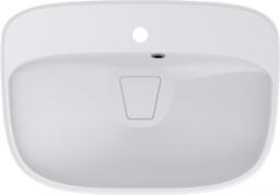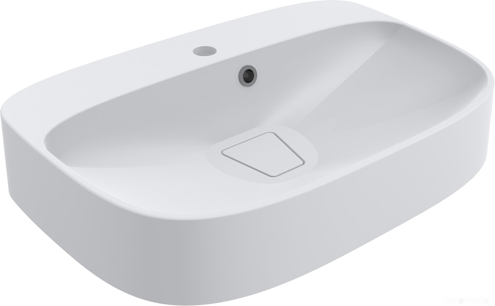 Умывальник на столешницу, ширина 62.7 см, длина 43.4 см, форма: прямоугольная, искусственный мрамор, отверстие под смеситель, отверстие под перелив.
