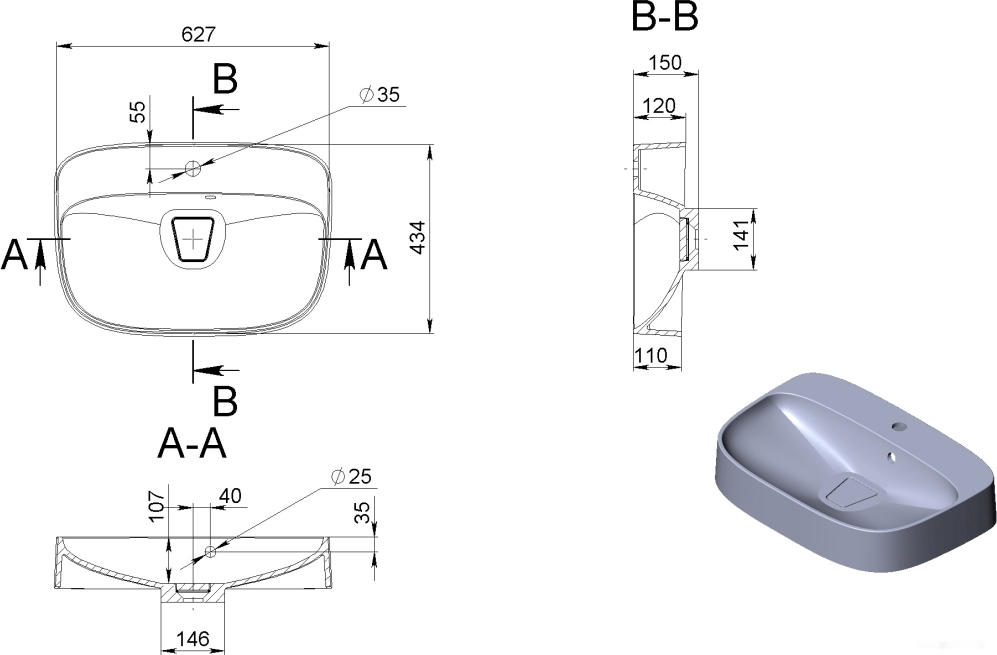 • Форма умывальника Прямоугольная