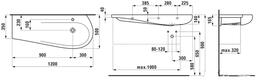 Умывальник на столешницу, ширина 1200 мм, длина 500 мм, форма: нестандартная, санитарная керамика, отверстие под смеситель, отверстие под перелив.