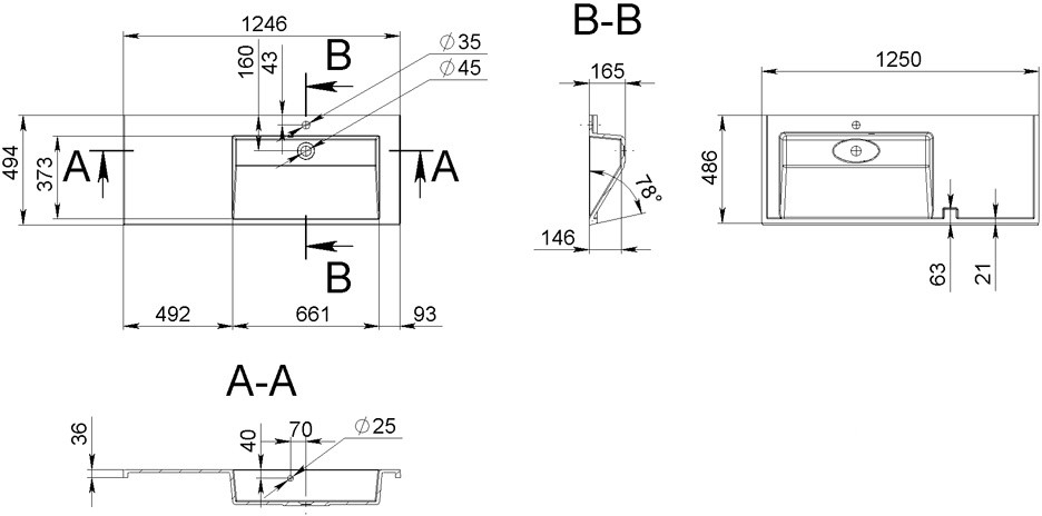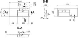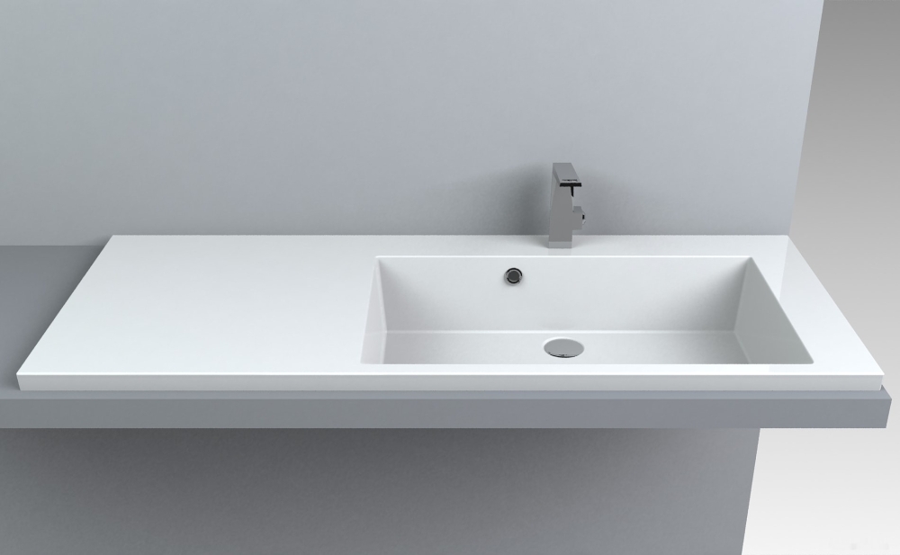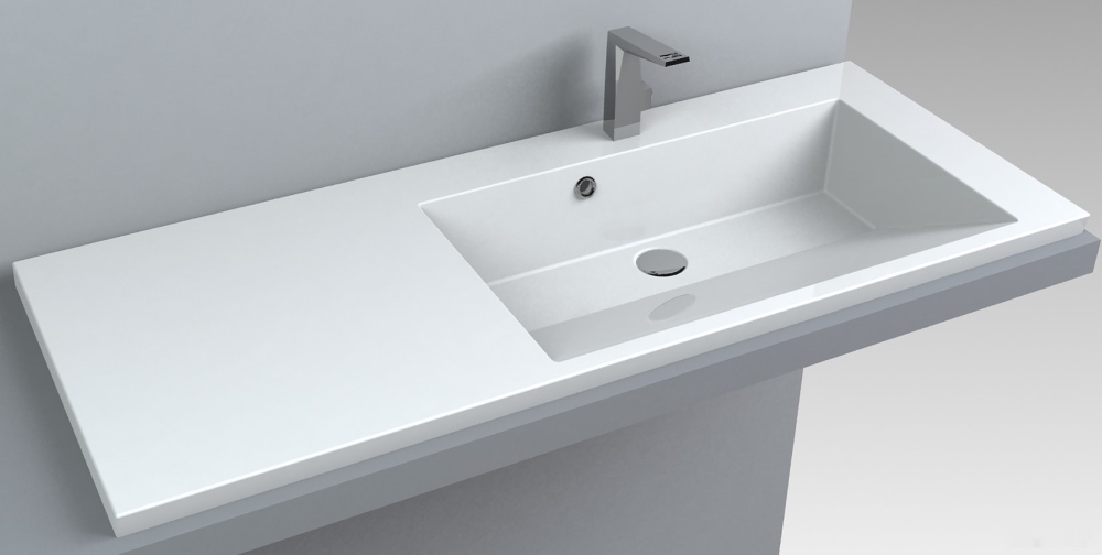 Умывальник врезной, на столешницу, ширина 1251 мм, длина 486 мм, форма: прямоугольная, искусственный мрамор, отверстие под смеситель, отверстие под перелив.