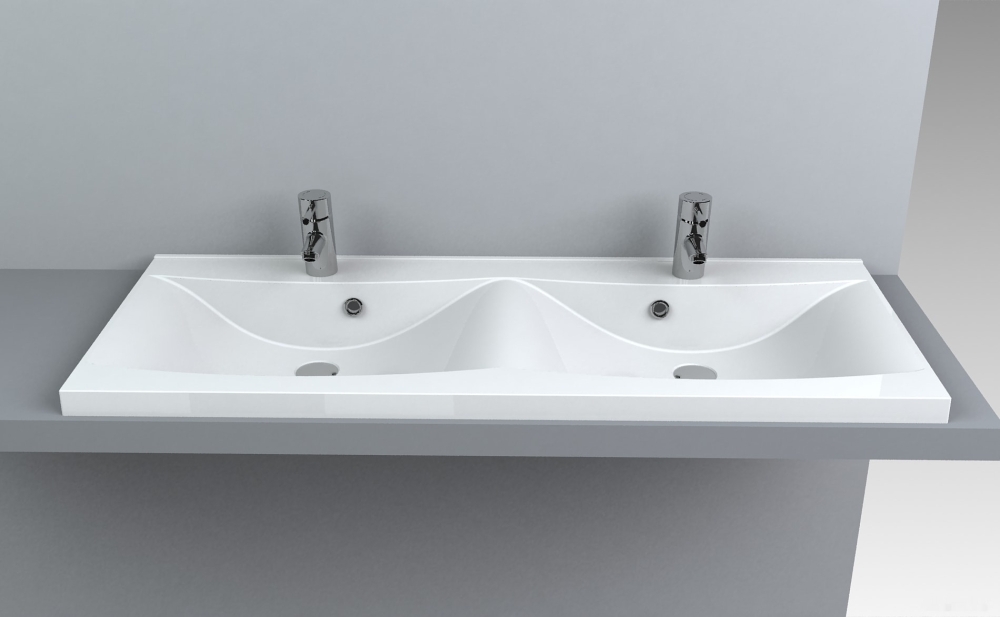 Умывальник врезной, на столешницу, ширина 1201 мм, длина 480 мм, форма: прямоугольная, искусственный мрамор, отверстие под смеситель, отверстие под перелив.