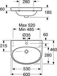 Умывальник на кронштейны, ширина 600 мм, длина 460 мм, форма: прямоугольная, фаянс/санфаянс.