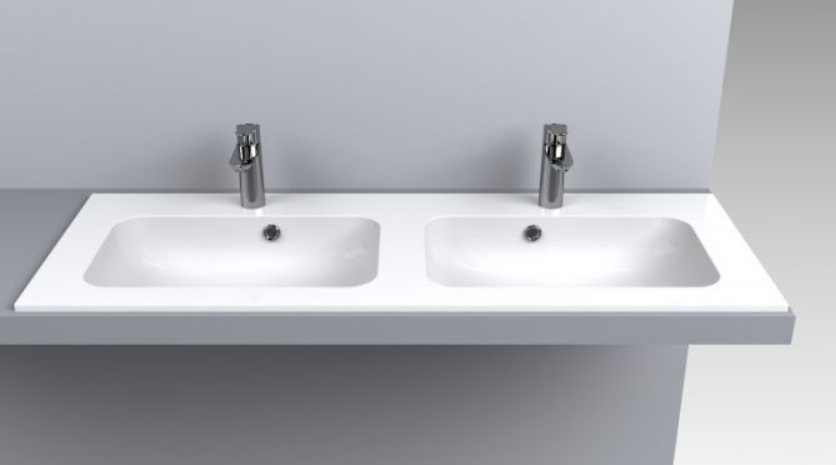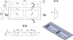 Умывальник врезной, на столешницу, ширина 1201 мм, длина 450 мм, форма: прямоугольная, искусственный мрамор, отверстие под смеситель, отверстие под перелив.
