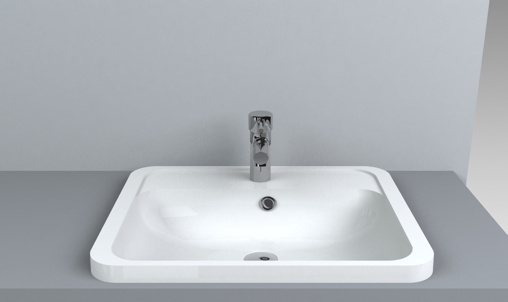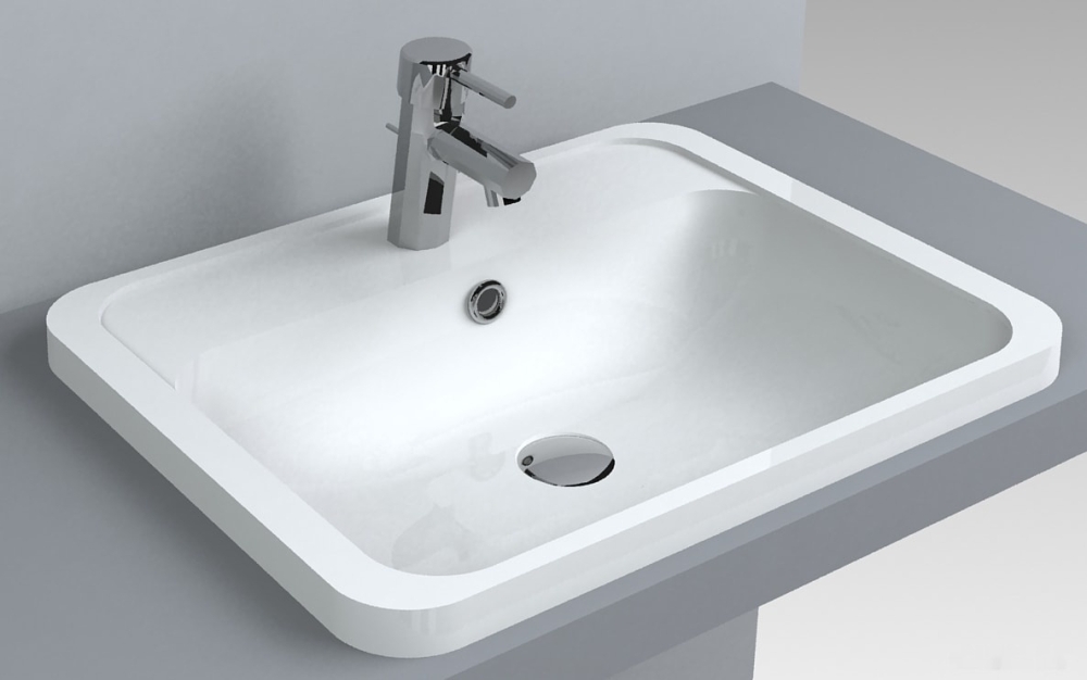 Умывальник врезной, на столешницу, ширина 547 мм, длина 430 мм, форма: прямоугольная, искусственный мрамор, отверстие под смеситель, отверстие под перелив.