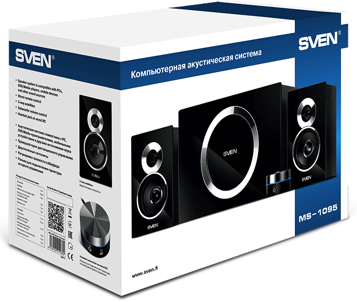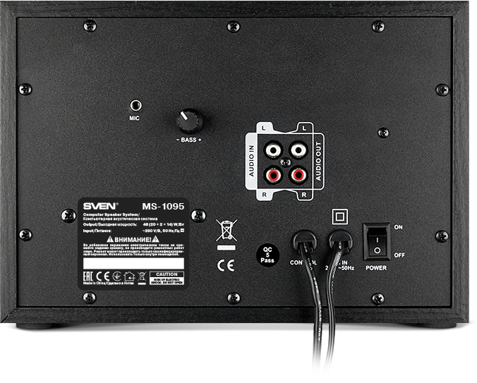 2.1, 48 Вт, нижняя частота 150 Гц, верхняя частота 20000 Гц, питание: от сети.