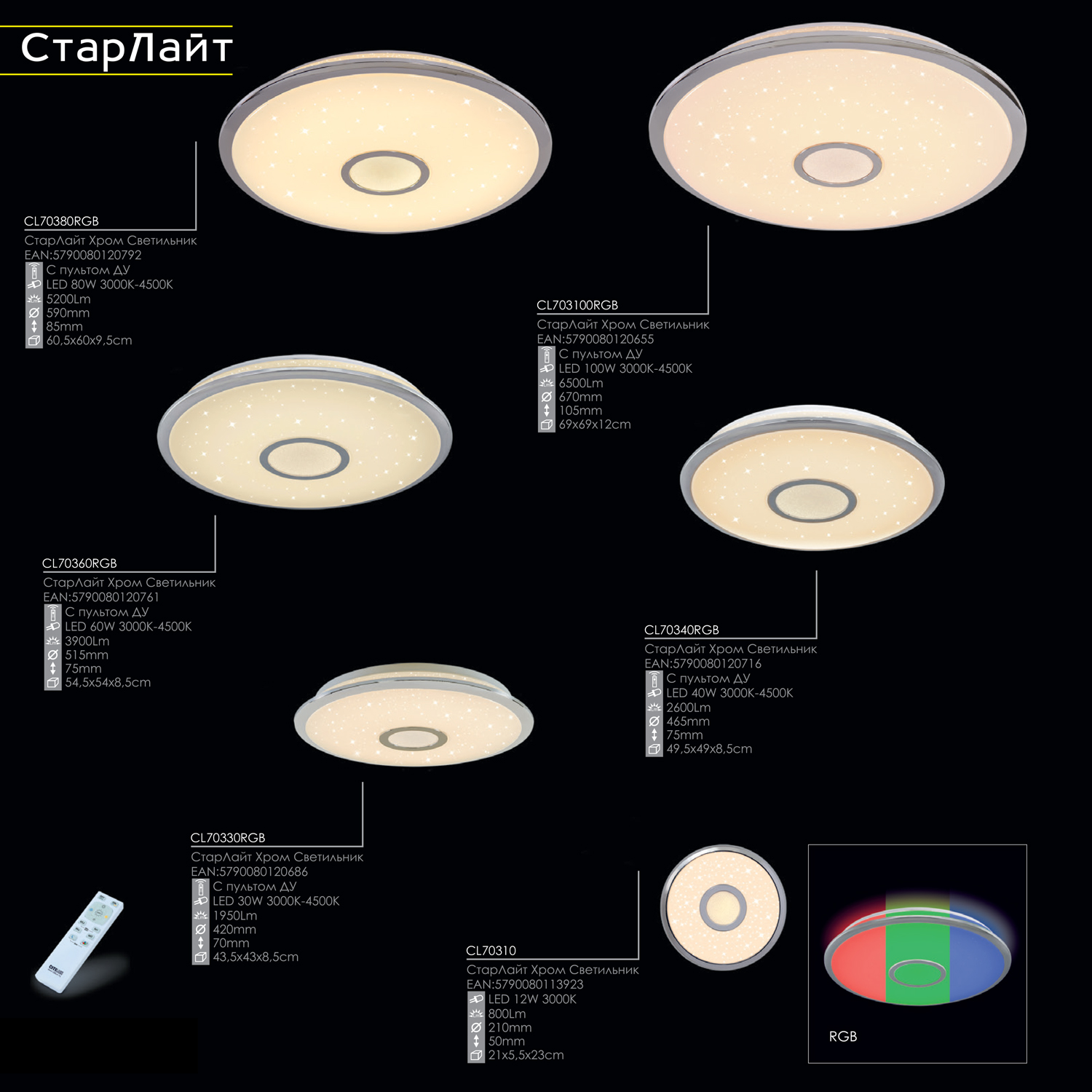 ДополнительноДиаметр 67 см, Высота 10.5 см, светодиодный светильник с управлением с пульта и выключателя, регулировка яркости и цветовой температуры в широких пределах, функция ночника, красивейший эффект "хрустального" света.