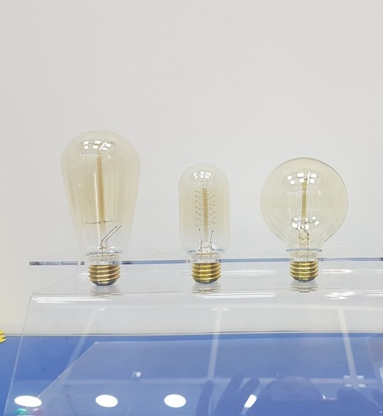 Технические особенностиРетролампа накаливания, Длина 120мм, Диаметр 80мм, нить установлена на 19 поддержках, золотистая колба и латунный цоколь, средний срок службы 3000ч.