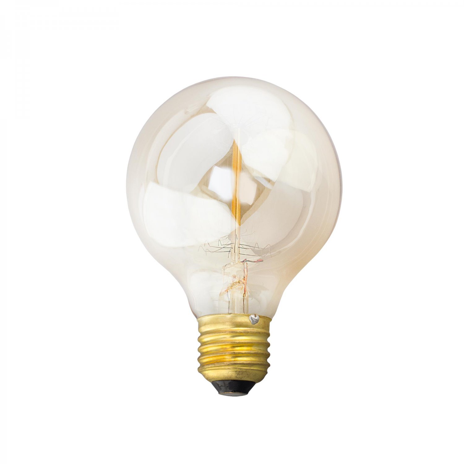 ДополнительноРетролампа накаливания, Длина 120мм, Диаметр 80мм, нить установлена на 19 поддержках, золотистая колба и латунный цоколь, средний срок службы 3000ч.
