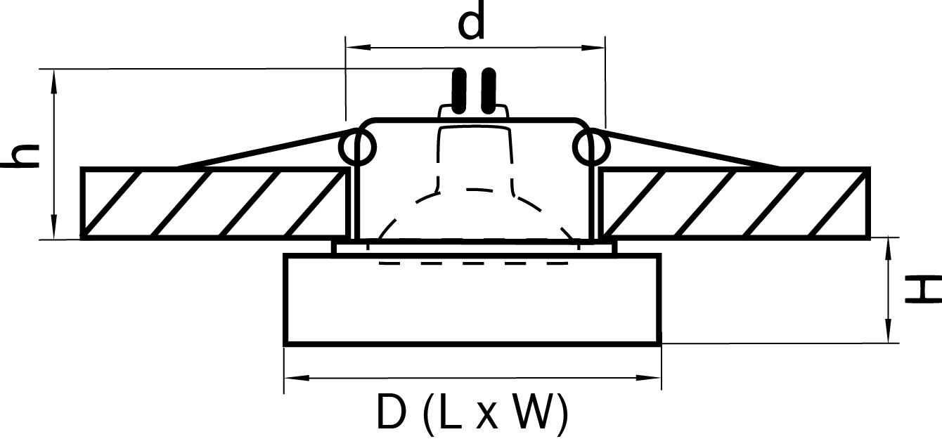 • Размеры Диаметр вырезного отверстия: 65 мм.Высота вырезного отверстия: 60 мм. D 110 H 35