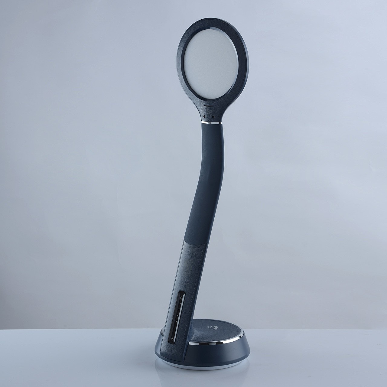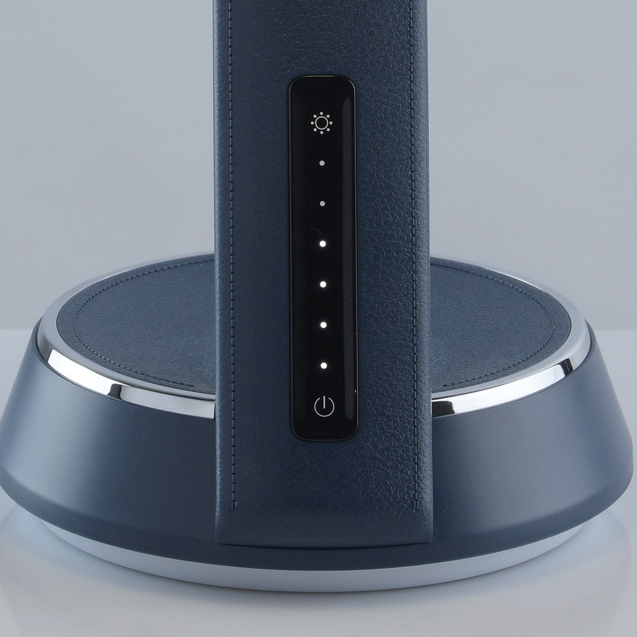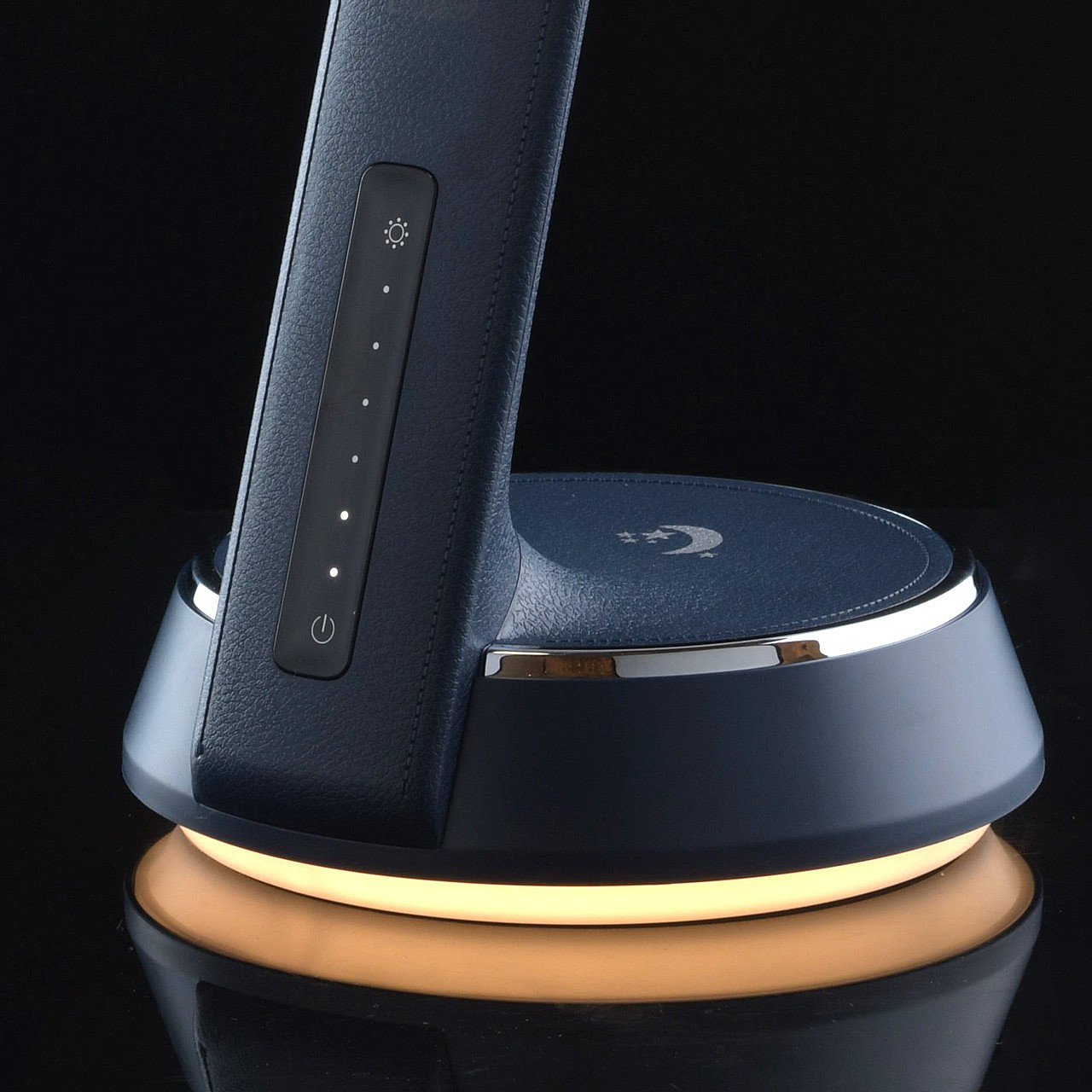 Технология производстваОснование выполнено из акрила синего цвета с имитацией натуральной кожи. Гибкий держатель выполнен из силикона цвета основания. Светодиодный источник света типа SMD закрыт матовым акрилом