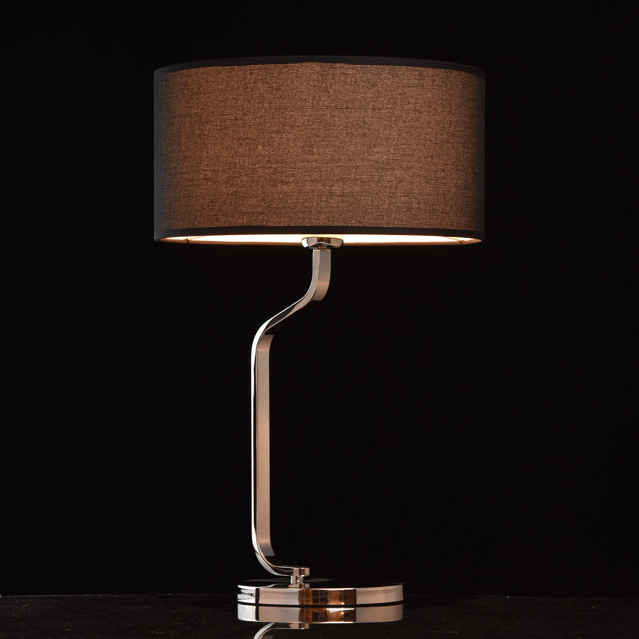 МатериалОснование из нержавеющей стали цвета хрома, текстильный абажур из черного льна