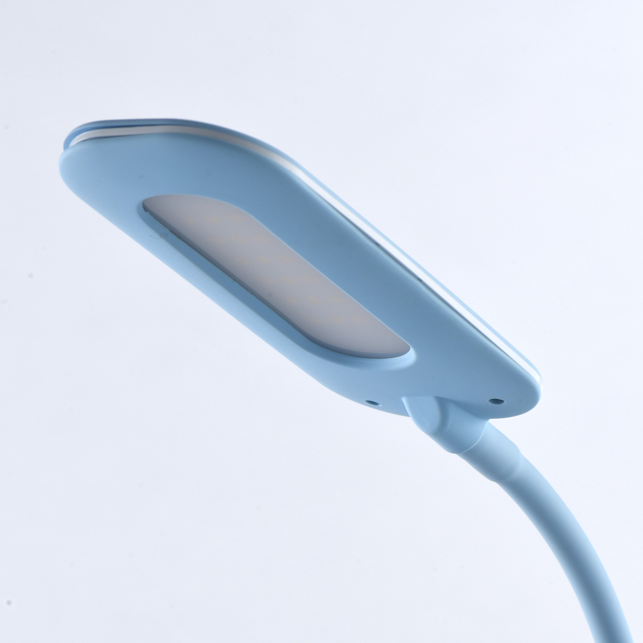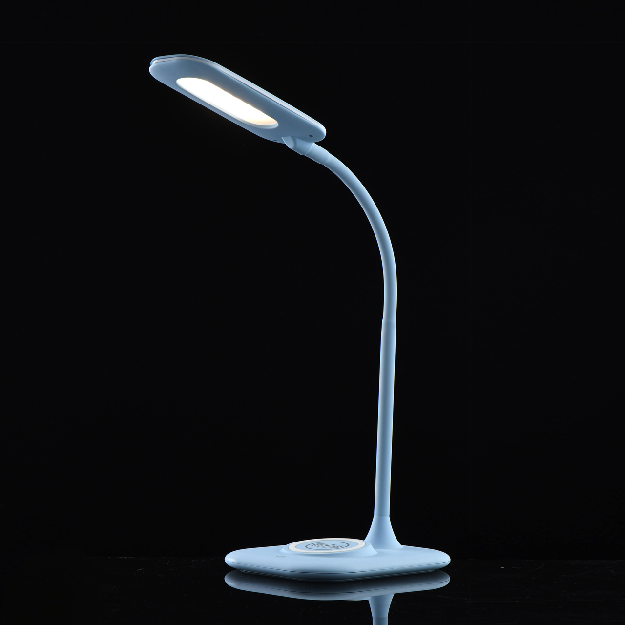 Преимущества моделиSoft-touch поверхность светильника в трендовом голубом цвете.Сенсорный выключатель на корпусе удобен в эксплуатации.Кастомизация плафона, благодаря гибкому держателю, можно выбрать удобное направление светового потока.Три режима яркости LED настраивает уровень зонального освещения.Беспроводная зарядка телефонов Android, iOS стандарта QI на антискользкой платформе.