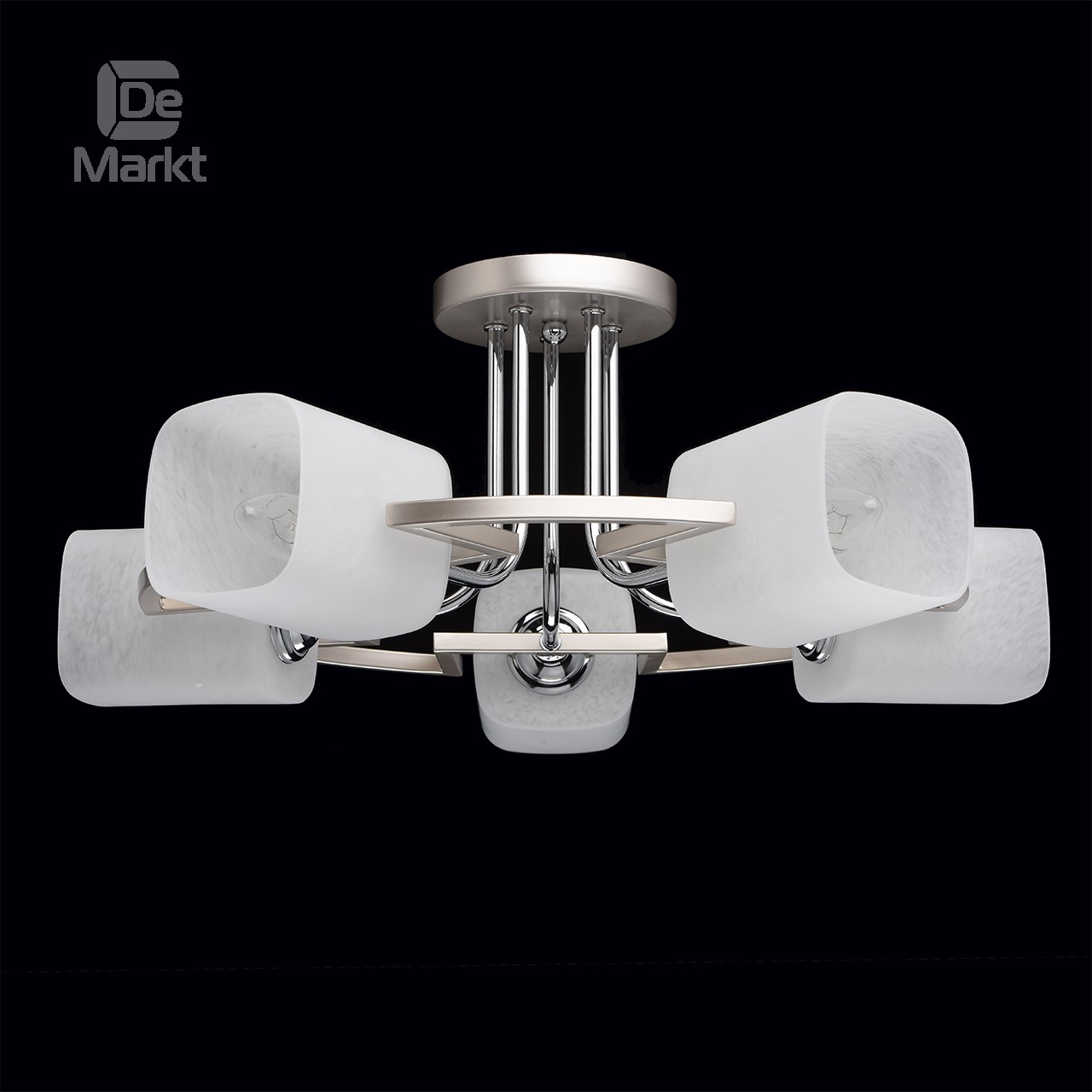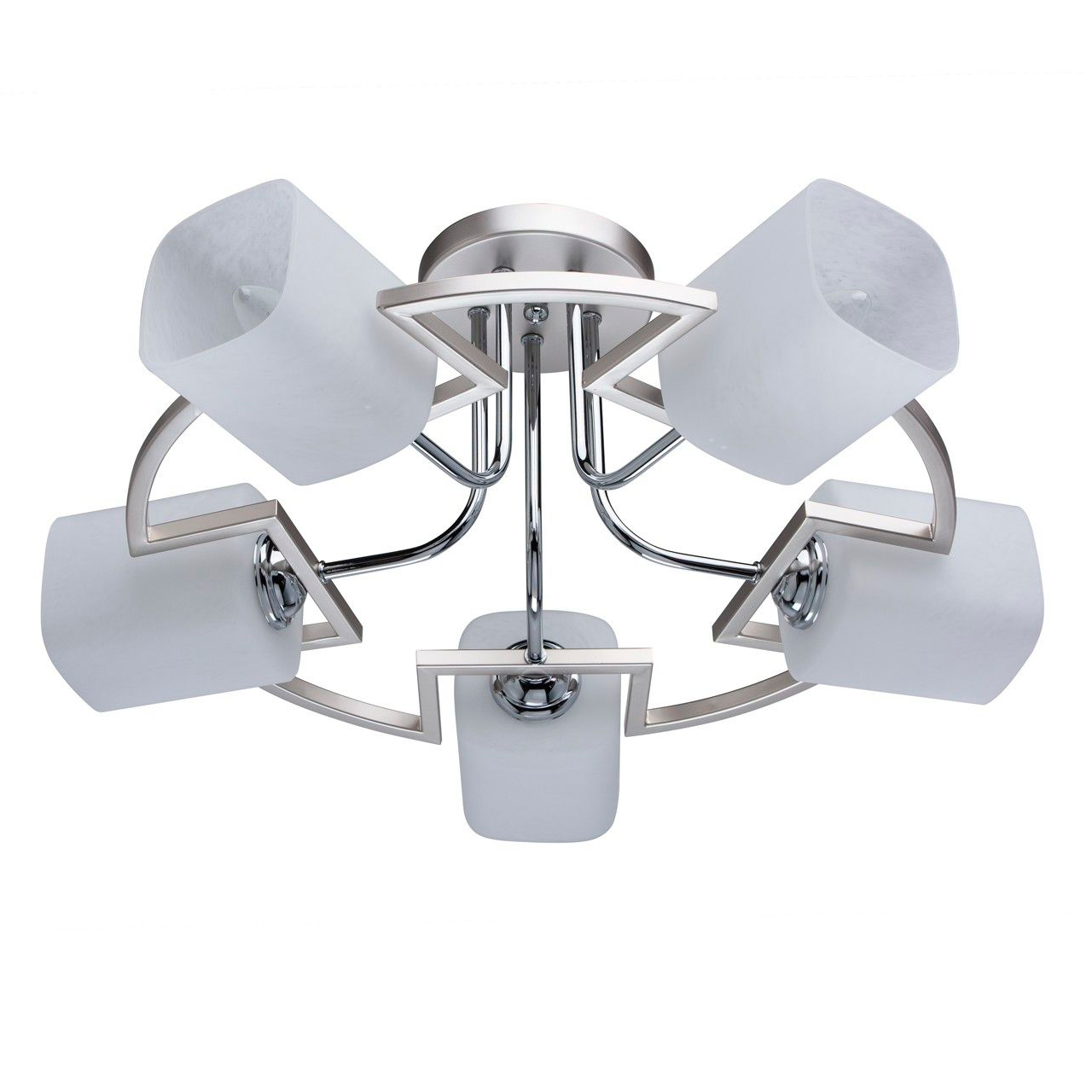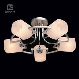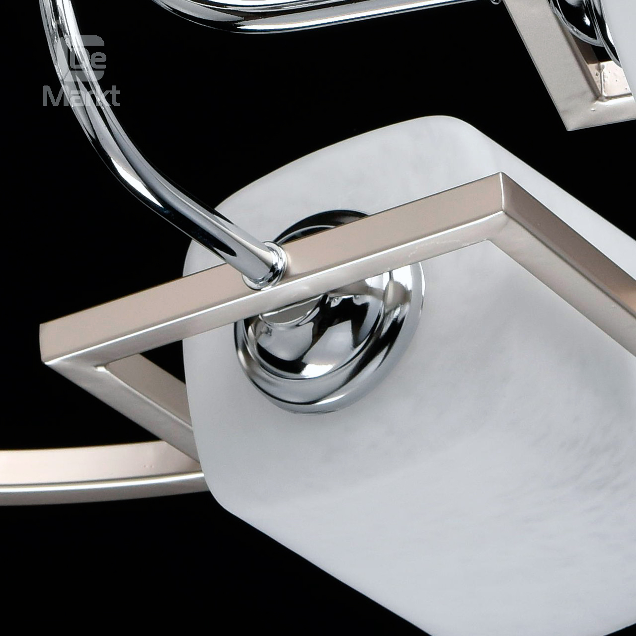 Технология производстваАрматура светильника выполнена из сплава железа. Основание и декоративные элементы окрашены в цвет перламутрового серебра. Рожки гальванизированы в цвет хрома. Светильник декорирован плафонами из стекла с добавлением алебастра.