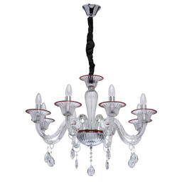 Преимущества моделиРоскошный дизайн в классическом стиле Традиционная форма свечи создает высокие параметры освещения больших помещений Прозрачные хрустальные подвески создают волшебную игру света Светильник отличается неповторимым оригинальным дизайном, его прозрачные стеклянные чаши декорированы кантом гранатового оттенка, что выгодно подчеркивает его индивидуальность. Наличие нескольких светильников в семье дает возможность комплексного освещения помещения Премиальный светильник по демократичной цене