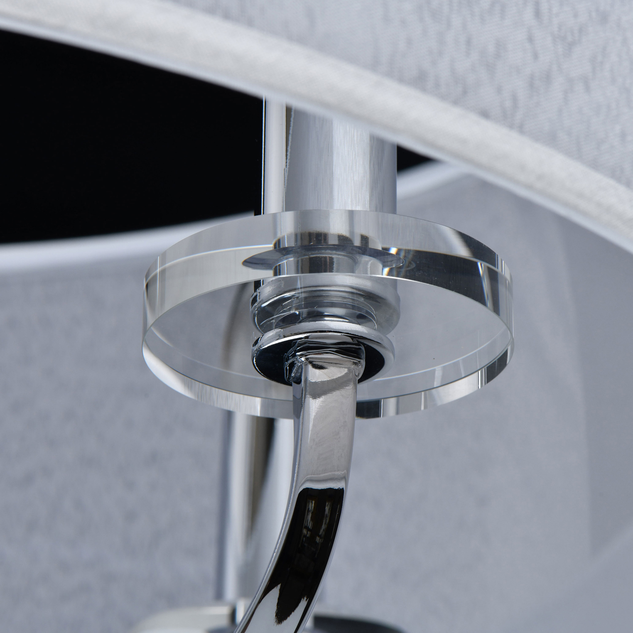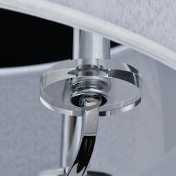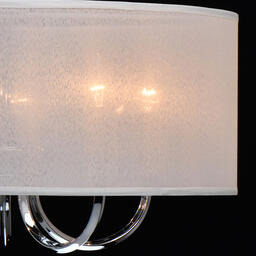 Технология производстваОснование светильника выполнено из металла и гальванизировано в цвет блестящего хрома. Абажур с термостойким акрилом внутри и текстилем с рисовым рисунком белого цвета снаружи. Абажур отделан кантом и прошит. Светильник декорирован прозрачным массивом хрусталя.