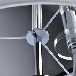 Преимущества моделиМодный минимализм в американском стиле придает актуальности интерьеру. Абажур рисово-белого цвета смягчает строгость форм. Полная семья решает задачи общего и зонального освещения. Трендовые цвета в коллекции, хрома и бронзы, универсальны в любом интерьере.
