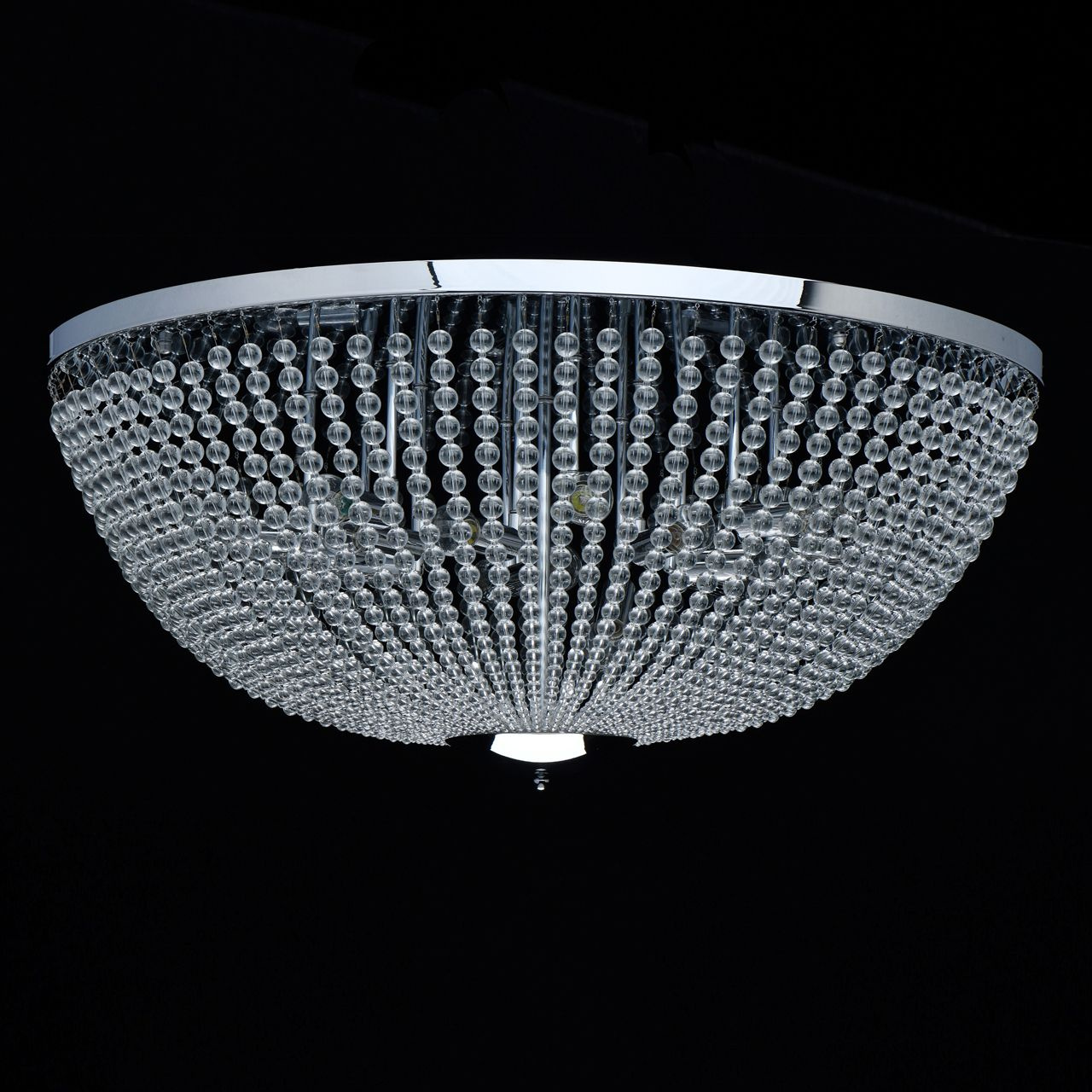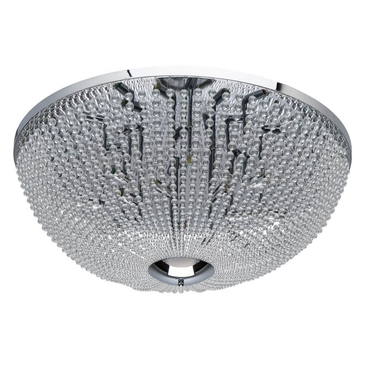 Преимущества моделиТрадиционная классика в современном исполнении Классическая полусфера цвета хрома идеальна для различных стилей Оригинальный декор из прозрачных стеклянных шаров отражается в зеркальном основании Компактная высота актуальна для стандартной высоты потолка Широкий диаметр обеспечивает большую площадь освещения Возможность регулировки светового потока удобна в эксплуатации.