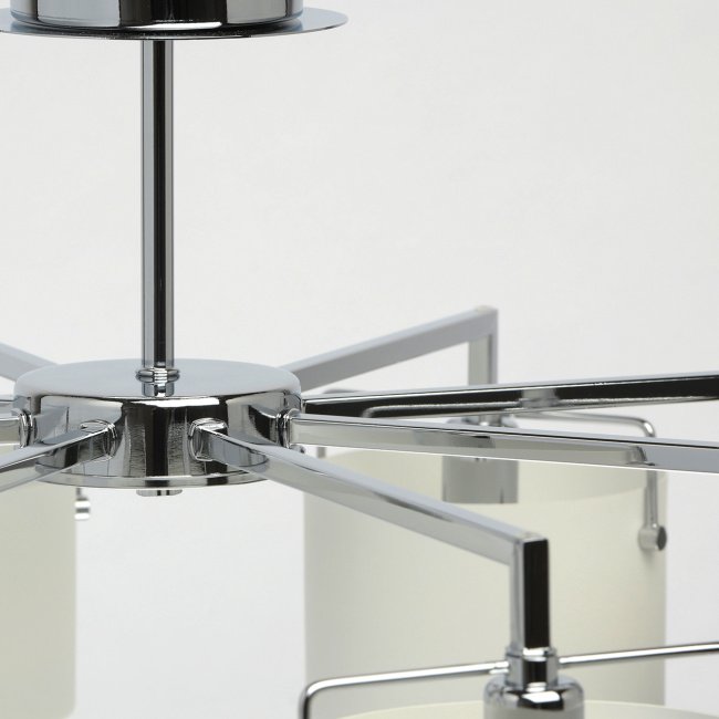 Технология производстваОснование светильника выполнено из металла и гальванизировано в цвет хрома. Металлические плафоны обработаны по технологии порошкового окрашивания в белый цвет. Источники света закрыты белым матовым акрилом.