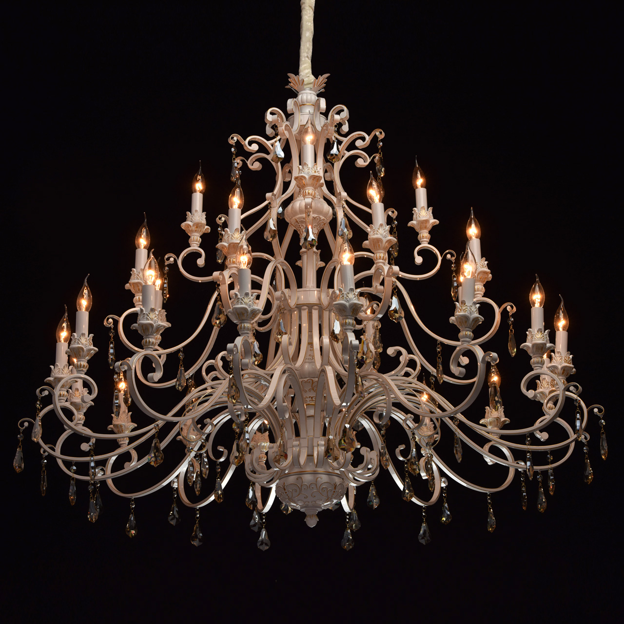 Технология производстваОснование: сплав металла, окрашено в белый глянцевый цвет. Выступающие части орнамента, края рожков и декоративных элементов окрашены вручную в золотой цвет. Потолочная чаша, корпус: прессование. Рожки, декоративные элементы: прокат на роликовом станке. Декор центрального стержня, завершие, декоративные розетки: искуственный каучук, художественное литье.
