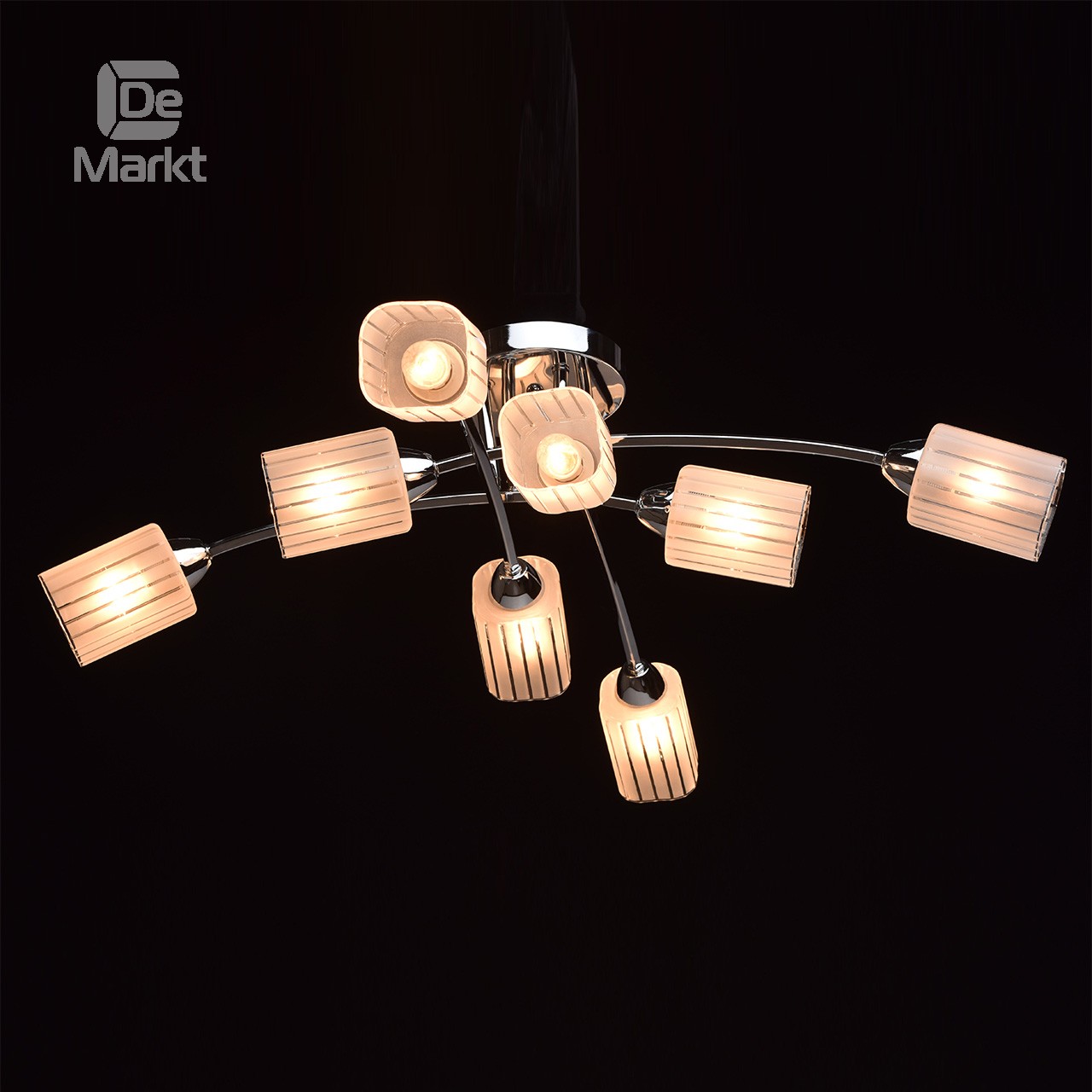 МатериалМеталлическое основание цвета хрома, стеклянные плафоны с геометрическим рисунком