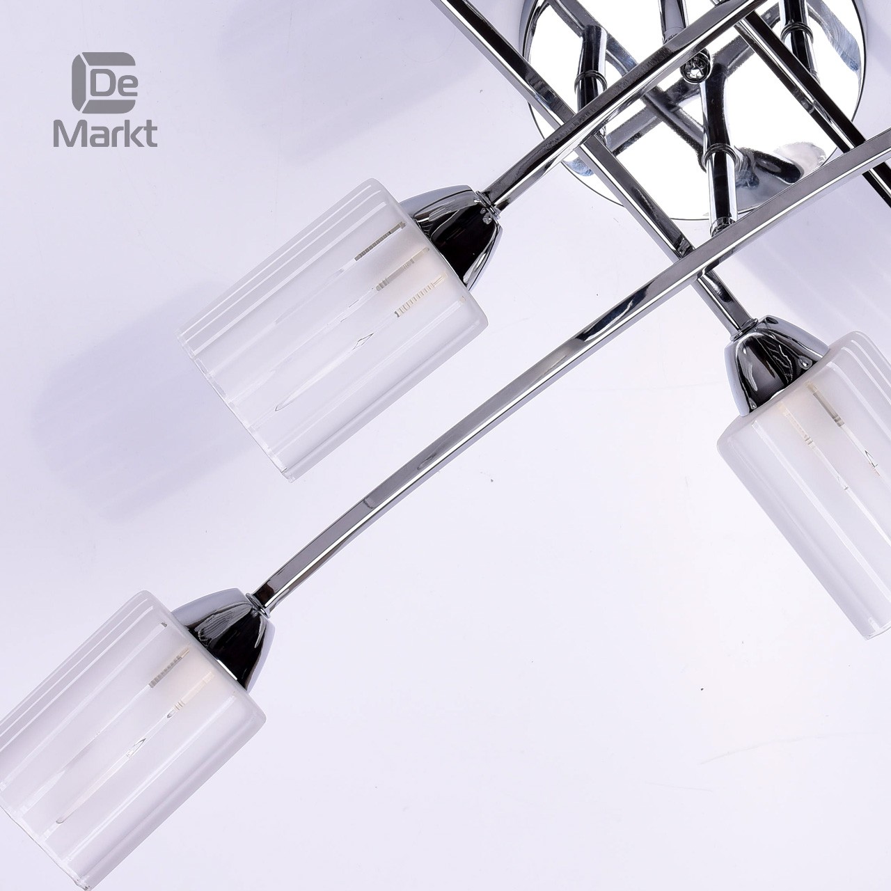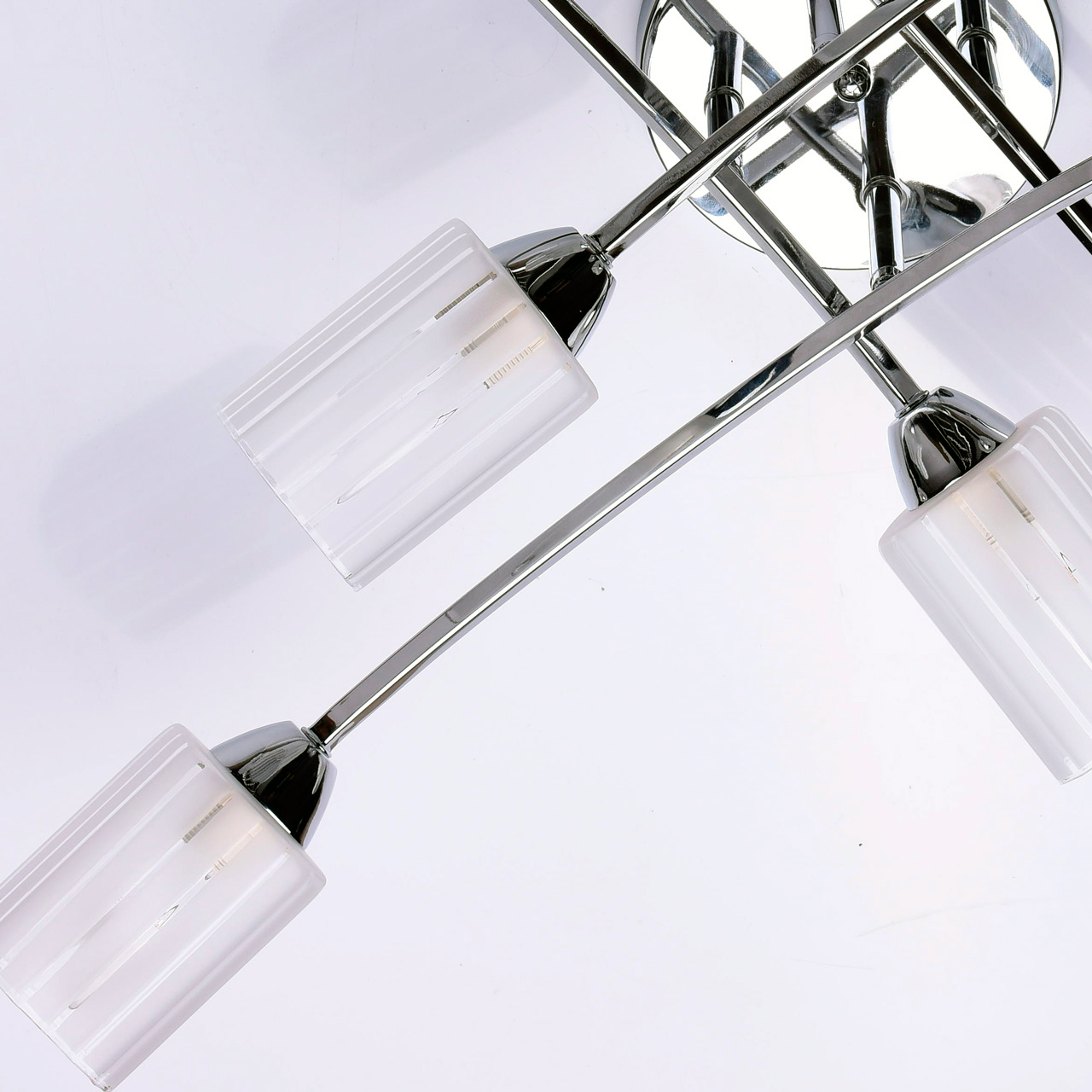 Технология производстваОснование светильника выполнено из металла и гальванизировано в цвет хрома. Потолочная чаша и держатели плафонов изготовлены по технологии обработки на токарном станке. Плафоны: стекло, отлито в форму. Плафоны матированы по трафарету.