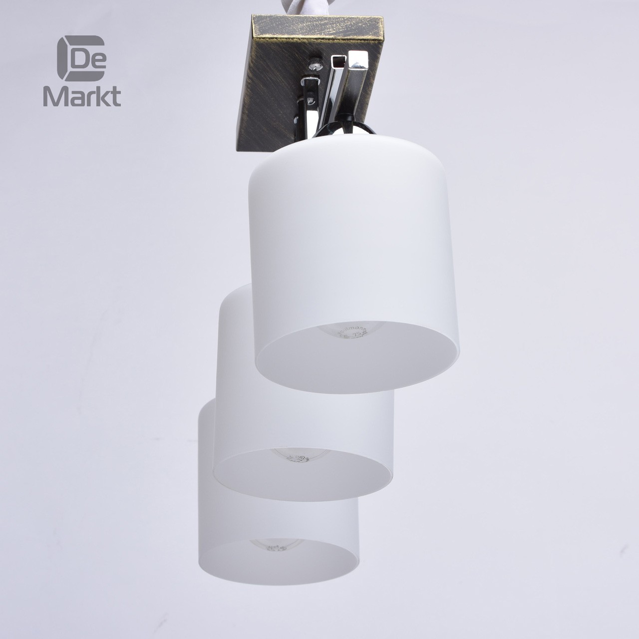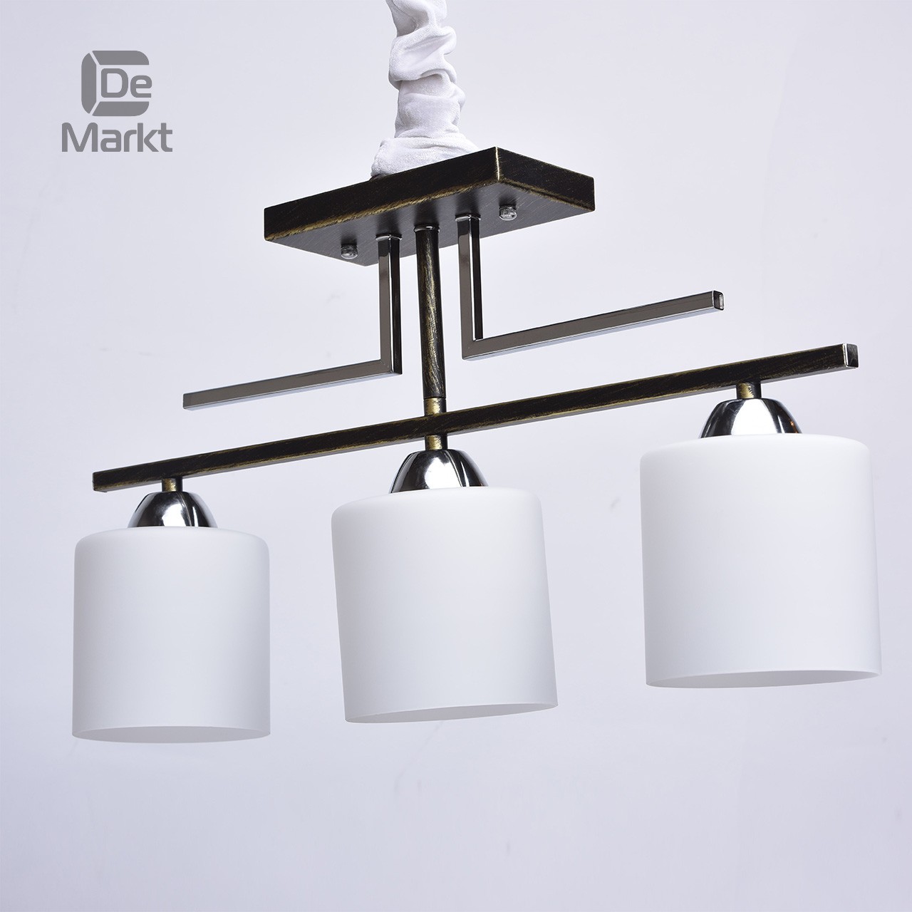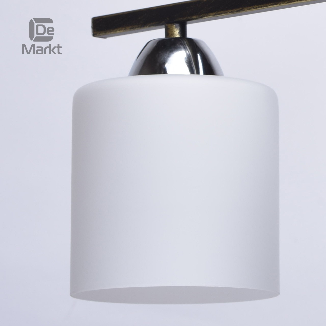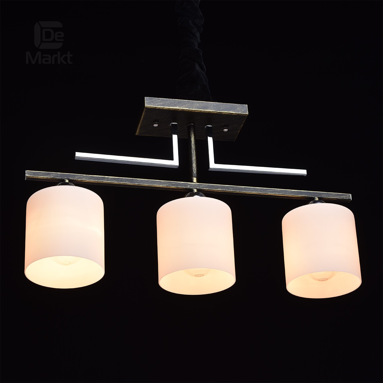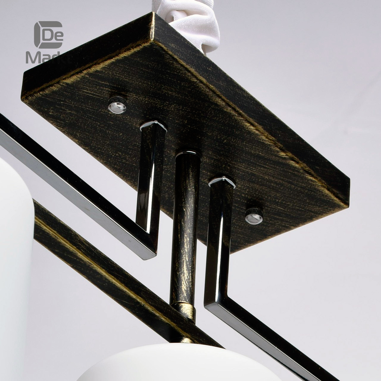 МатериалМеталлическое основание цвета золота с эффектом патинирования черного цвета, плафоны из белого матового стекла, декоративные элементы из металла цвета хрома