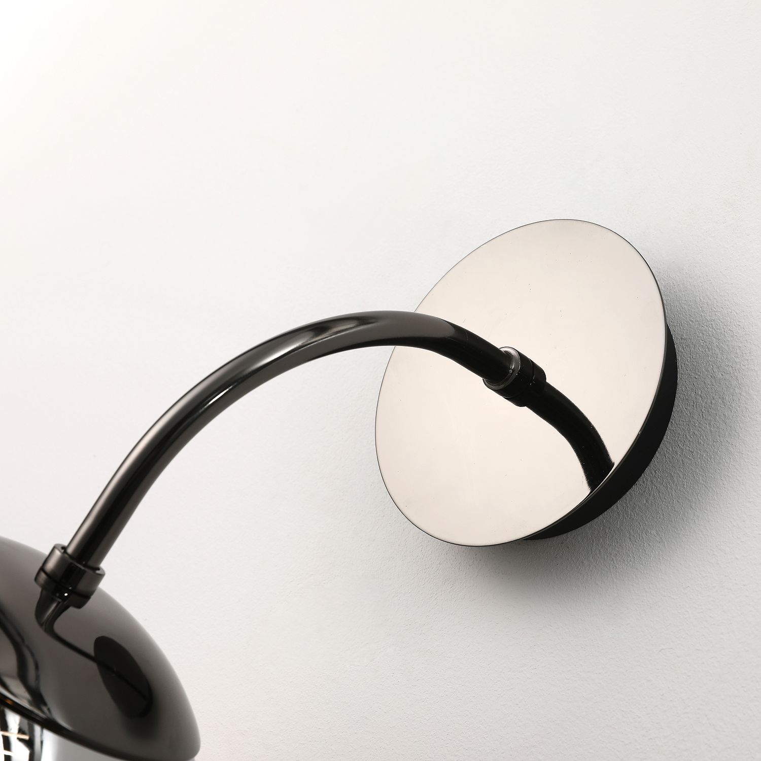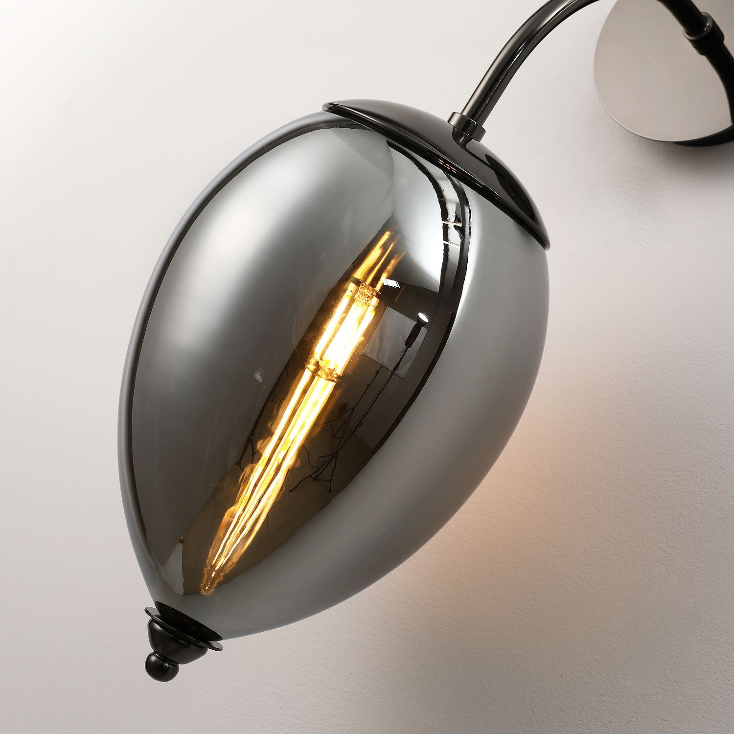 • Технические особенности Настенный светильник в цвете черный хром с выдувным зеркальным плафоном
