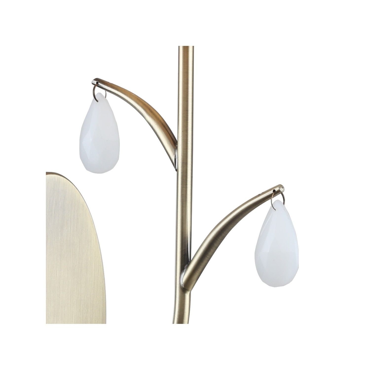 • Технические особенности Каркас цвета античная латунь, плафон из ткани кремового цвета, декоративные элементы в виде подвесок из белого стекла