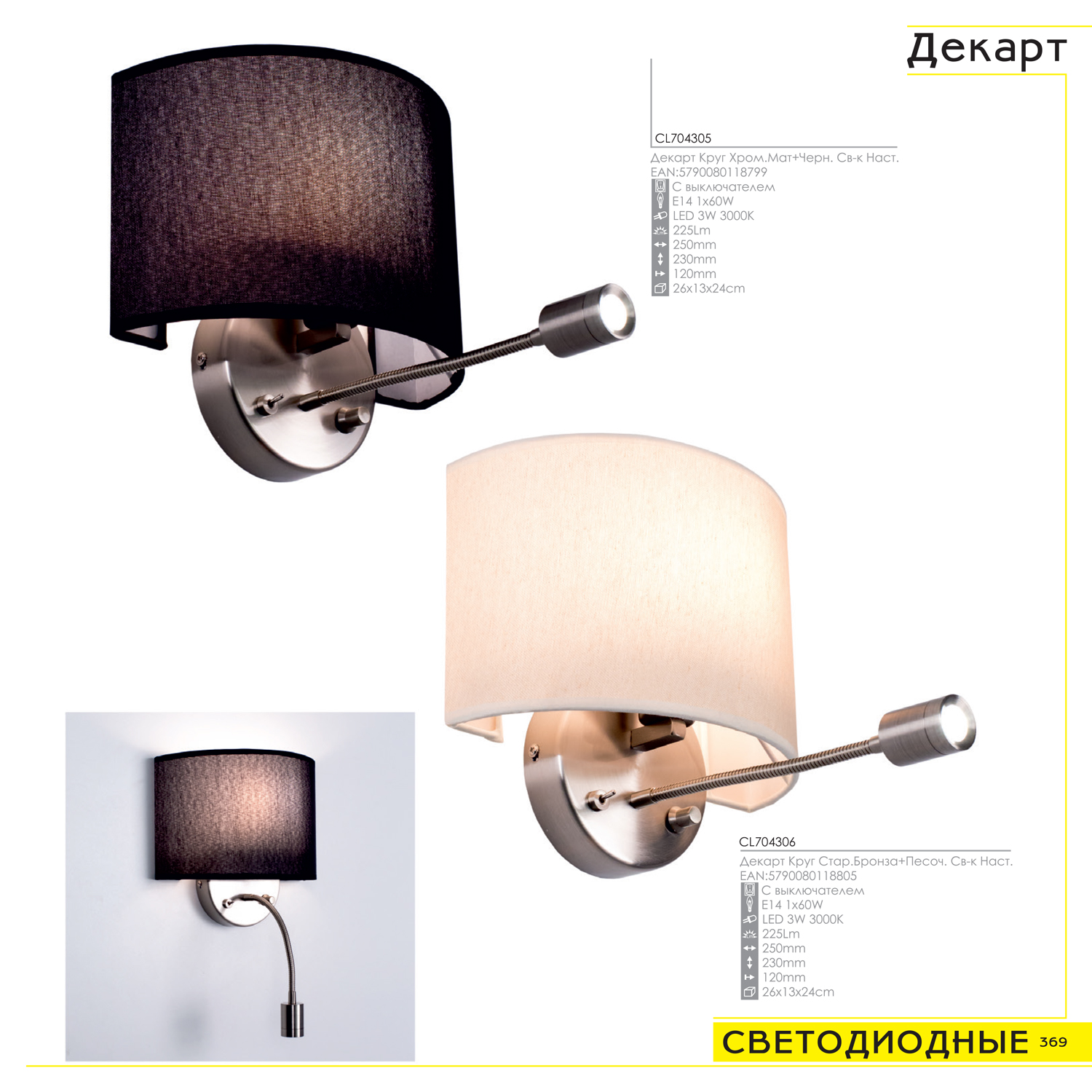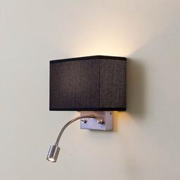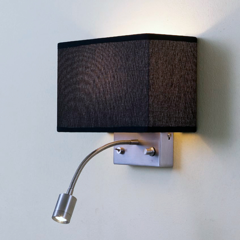 ДополнительноСветильник комбинирует общий и направленный свет с их раздельным включением, Основное назначение - прикроватный светильник, Диммированая лампа Е14*60Вт для общего света, Светодиодная лампа 3Вт теплого света (ЦТ=3000К) с регулировкой положения - для чтения