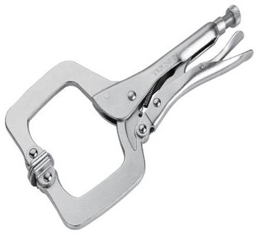 Зажимные клещи типа С от бренда Tolsen изготовлены из инструментальной кованой стали с дополнительным никелированным покрытием. Прочность крепления позволяет выполнить любые зажимные работы. Длина конструкции составляет 280 мм.