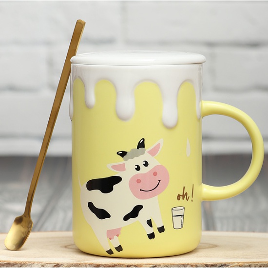 коровки со стаканом молока. В верхней части кружки декор в виде молочных