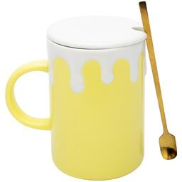 металлическая ложка с золотистым напылением.Особенности:Материал : кружка с крышкой- керамика, ложка- металл.Размер кружки с крышкой:122*83*116 мм.Длина ложки: 149 мм.Полезный объём: 380 мл.Полный объём: 430 мл.Вес нетто: 412 гр.