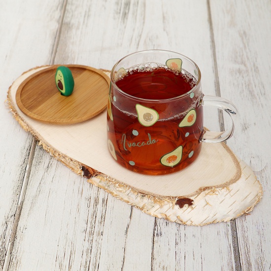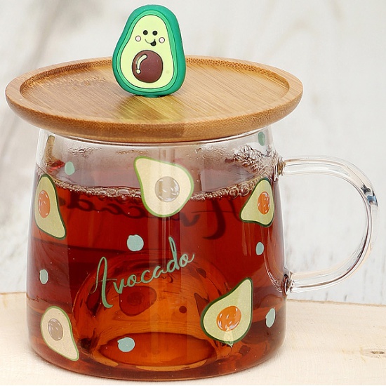 уютно устроились на корпусе и крышке этой кружки.Особенности:Материал: кружка-стекло, крышка-бамбук.Размер кружки: 80*84*112 мм.Размер крышки-подставки: 36*95*95 мм.Полезный объём: 250 мл.Полный объём: 310 мл.Вес нетто: 136 гр.